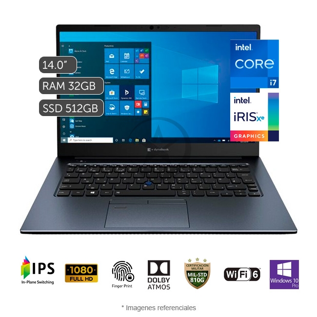 Laptop Toshiba Dynabook Portege X40-J, Intel Core i7-1165G7 Hasta 4.7 GHz, RAM 32GB, SSD 512GB, LED 14″ Full HD, Peso 1.25 Kg, Windows 11 Pro