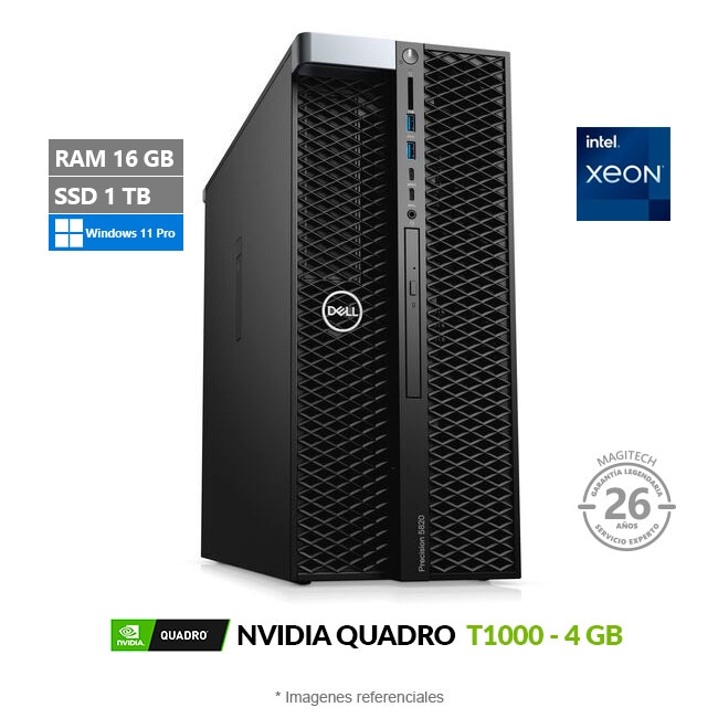 PC Dell PCs WorkStation Precision 5820 Tower, Intel Xeon W-2135 Hasta 4.5 GHz, RAM 32GB, SSD 1TB + HDD 2TB, 4GB NVIDIA Quadro T1000, Wi-Fi, Windows 11 Pro