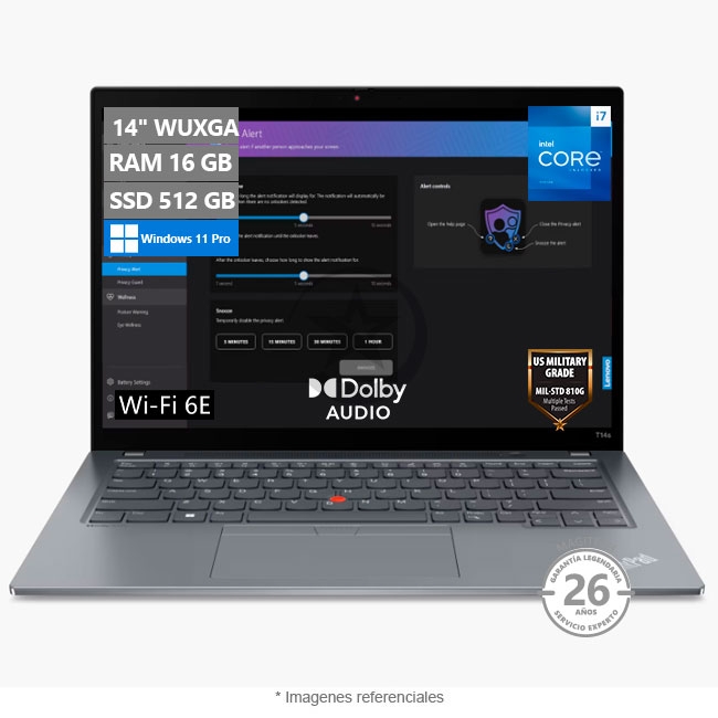 Ultrabook Lenovo ThinkPad T14s Gen 4, Core i7-1355U Hasta 5.0 GHz, RAM 16GB, SSD 512GB, 14″ WUXGA, Peso 1.4 Kg, Windows 11 Pro