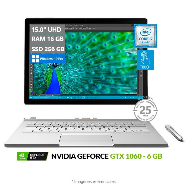 desmontable PixelSense de 15" (3240 x 2160) Ultra HD 4K aspecto (3:2), Capacidad táctil, compatible lápiz Surface. Se convierte en una super tablet de uso profesiona. |