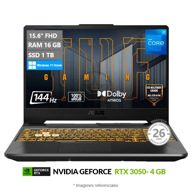 Laptop Asus TUF F15-FX507ZC Gaming, Core i7-12700H Hasta 4.7 GHz, RAM 16GB, SSD 1TB, GeForce RTX 3050 de 4GB, 15.6" FHD 144Hz, Windows 11 Home