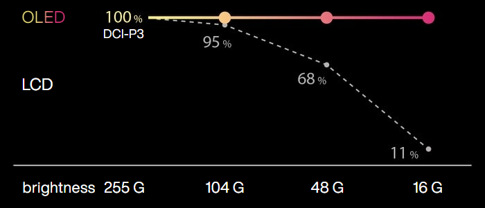 de 2880 x 1800 2.8K, gama de colores 100% DCI-P3
