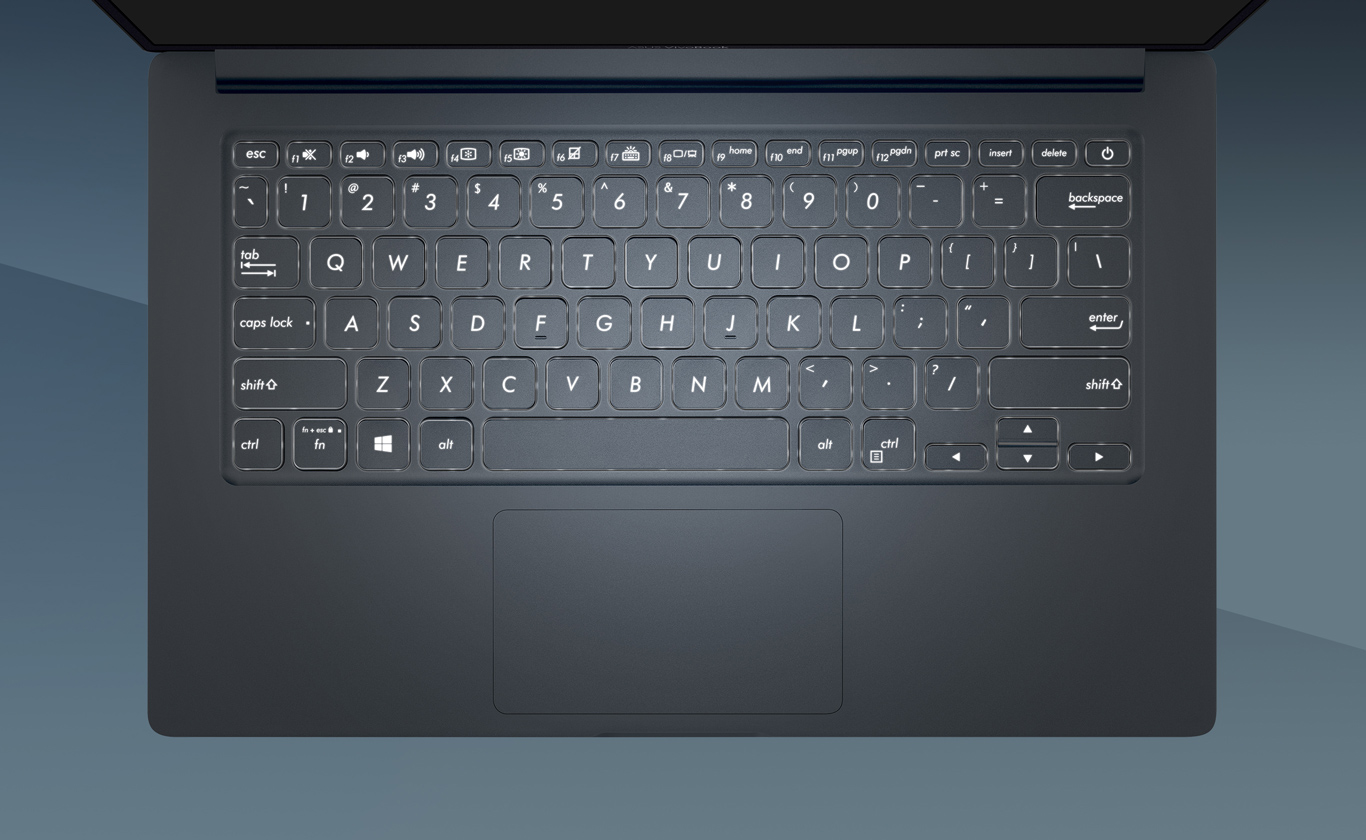 El teclado retroiluminado de tamaño completo3 del VivoBook 14 es perfecto para trabajar en entornos con poca luz. Su diseño ergonómico, su construcción robusta de una sola pieza y su recorrido de tecla de 1,4 mm brindan una experiencia de escritura cómoda.