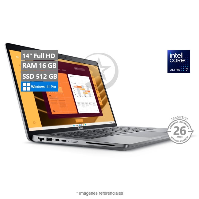 Laptop Dell Latitude 5450, Intel Core Ultra 7 165U Hasta 4.9 GHz, RAM 16GB, SSD 512GB, LED 14" Full HD, Windows 11 Pro SP