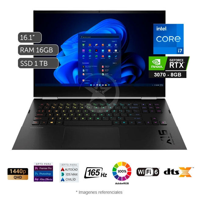 Laptop HP Omen 16-B0005DX Gaming, Intel Core i7-11800H Hasta 4.6 GHz, RAM 16GB, SSD 1TB, 8GB NVIDIA GeForce RTX 3070, LED 16.1" QHD 2K a 165Hz, Windows 11 Home (Special Edition)