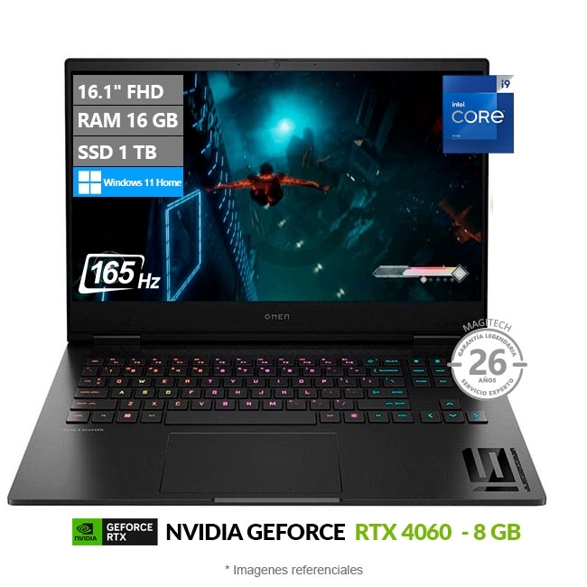 - Pantalla LED de 16.1» IPS Full HD a 165Hz, con microbordes, antirreflejante