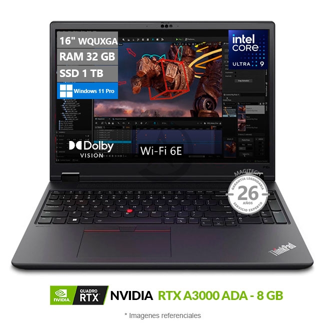 »Potencia, diseño robusto y precisión para profesionales que exigen más. Impulsada por procesadores Intel Core de última generación y gráficos NVIDIA RTX, la P16v está lista para enfrentar proyectos complejos sin esfuerzo. Su pantalla de alta resolución con certificación de color garantiza fidelidad visual para tareas de diseño y creación. Un equipo que combina rendimiento, confiabilidad y versatilidad en cada detalle.»