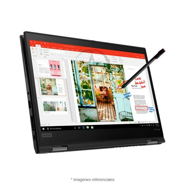 »Experimenta la versatilidad suprema con el ThinkPad X13 Yoga. Este 2 en 1 potente se adapta a tus necesidades con un diseño elegante y la potencia de los procesadores Intel® Core™. Su pantalla táctil. su portabilidad sin esfuerzo y las funciones de seguridad avanzadas hacen del X13 Yoga la elección perfecta para profesionales en movimiento. Trabaja y crea con confianza en este dispositivo flexible y resistente.»