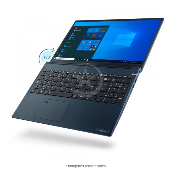 A los profesionales modernos les encantará llevar el Tecra A50. El dispositivo cuenta con unos biseles delgados que le dan un aspecto compacto, e incluye un teclado con retroiluminación de gran tamaño y escritura cómoda, un amplio panel táctil y un teclado numérico completo. La pantalla IPS antirreflectante de 15,6 pulgadas con opciones táctiles se puede abrir a un máximo de 180 grados. Al cerrarla, verás un elegante exterior de original diseño de ondulado y un logotipo con acabados exclusivos. El recubrimiento con pintura antibacteriana Mystic Blue no solo le da un acabado elegante, sino que también repele gérmenes y bacterias. Pesa tan solo 1,7 kg, por lo que se puede sujetar sin esfuerzo.