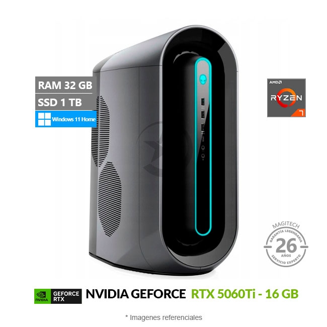 PC Dell Alienware Aurora R10 Special Edition, Ryzen 7 5800/ RAM 32GB/ SSD 1TB/ 16GB NVIDIA RTX 5060Ti/ Fuente 1000W/ Water Cooling/ W11H