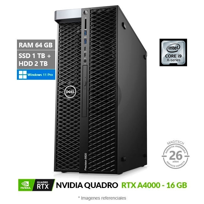 PC Dell PCs WorkStation Precision 5820 Tower, Intel Core i9-10900X Hasta 4.5 GHz, RAM 64GB, SSD 1TB + HDD 2TB, 16 GB NVIDIA Quadro RTX A4000, Windows 11 Pro