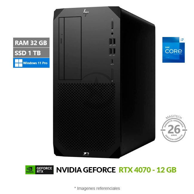 PC HP PCs WorkStation Z2 G9 Tower/ Core i7-13700/ RAM 32GB/ SSD 1TB/ RTX 4070 12GB/ Fuente 700W/ W11P