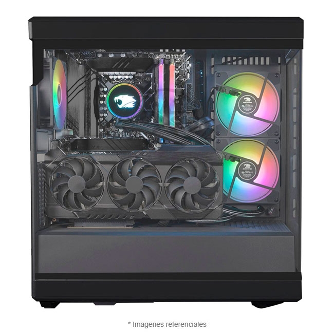 - Sistema de refrigeración líquida de CPU y ventiladores RGB en un elegante chasis