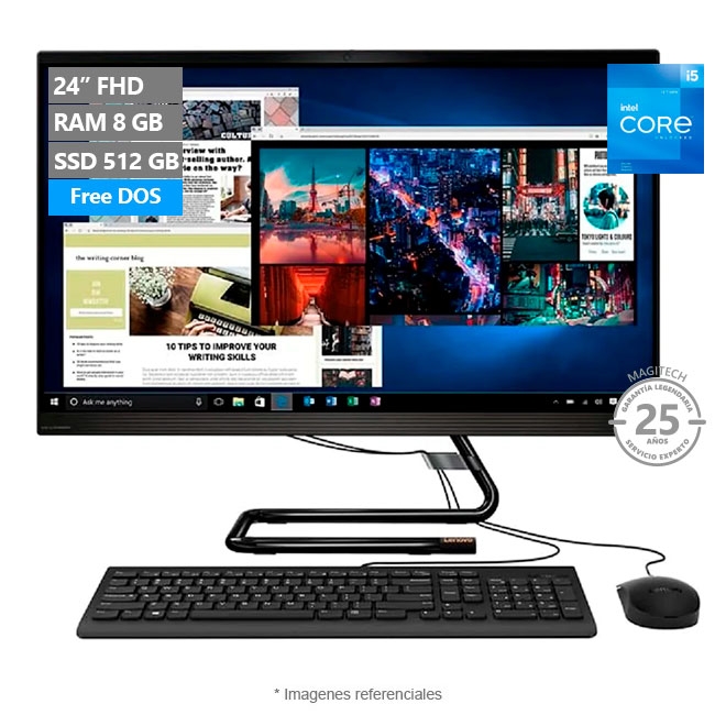 - Pantalla 24″ Full HD (1920×1080) IPS, marcos reducidos para mayor amplitud de imagen