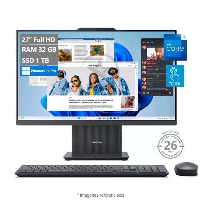 »La solución definitiva para creadores y diseñadores. Su pantalla de 27″ con gran gama de colores ofrece imágenes vibrantes y precisas, perfectas para trabajos creativos. Además, su carga inalámbrica integrada te mantiene siempre conectado, sin interrupciones. Con un rendimiento optimizado, este AIO compacta te brinda la potencia y fluidez que necesitas para llevar tus proyectos al máximo nivel.»