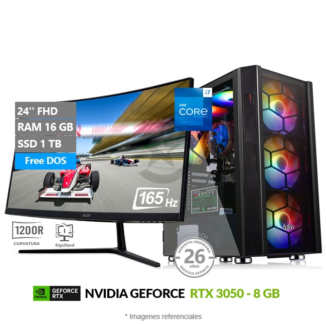 PC MAGIC StudioFire, Intel Core i7-14700F Hasta 5,4 GHz, RAM 16GB, SSD 1TB, 8GB NVIDIA GeForce RTX3050, Monitor Gamer Curvo 24'' a 100Hz, Wi-Fi, Teclado y mouse