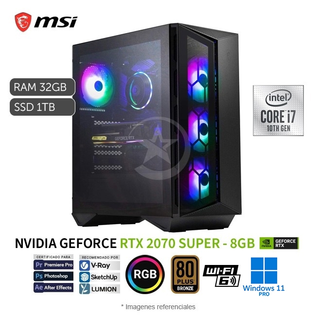 Experimente un aumento del 40% en informática desde la última generación. MSI Desktop está equipado con el procesador Intel Core i7 de décima generación con la máxima potencia informática para brindarle una experiencia de juego incomparable.* Rendimiento en comparación con i7-9700.** Las especificaciones varían según el modelo
